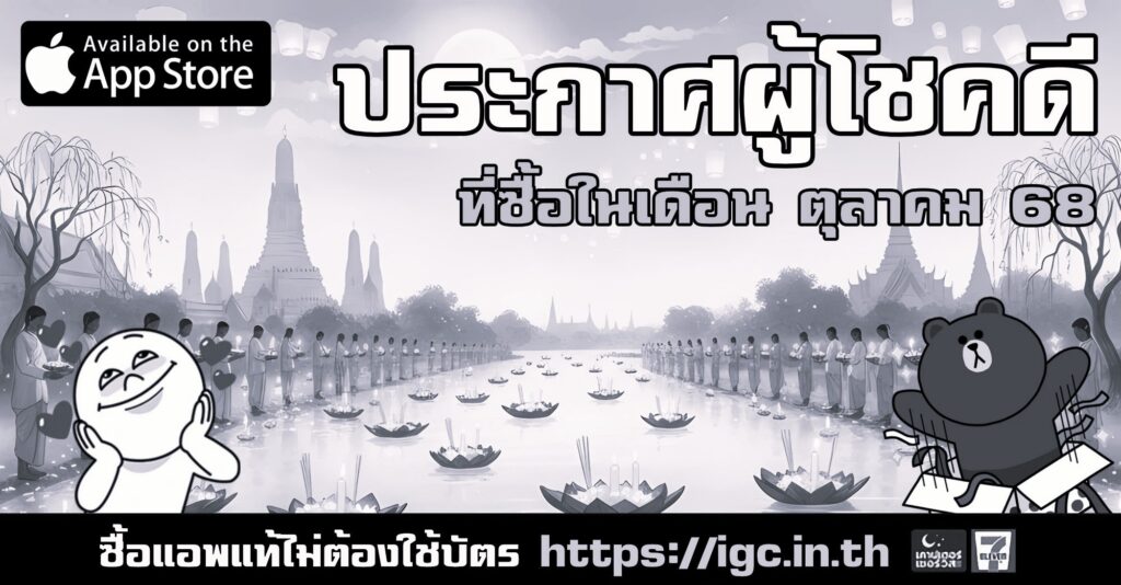 รายชื่อผู้โชคดีสำหรับท่านที่ซื้อ iTunes Gift Card กับทาง IGC.IN.TH ในช่วงเดือน ตุลาคม 2568 มาแล้วจ้า