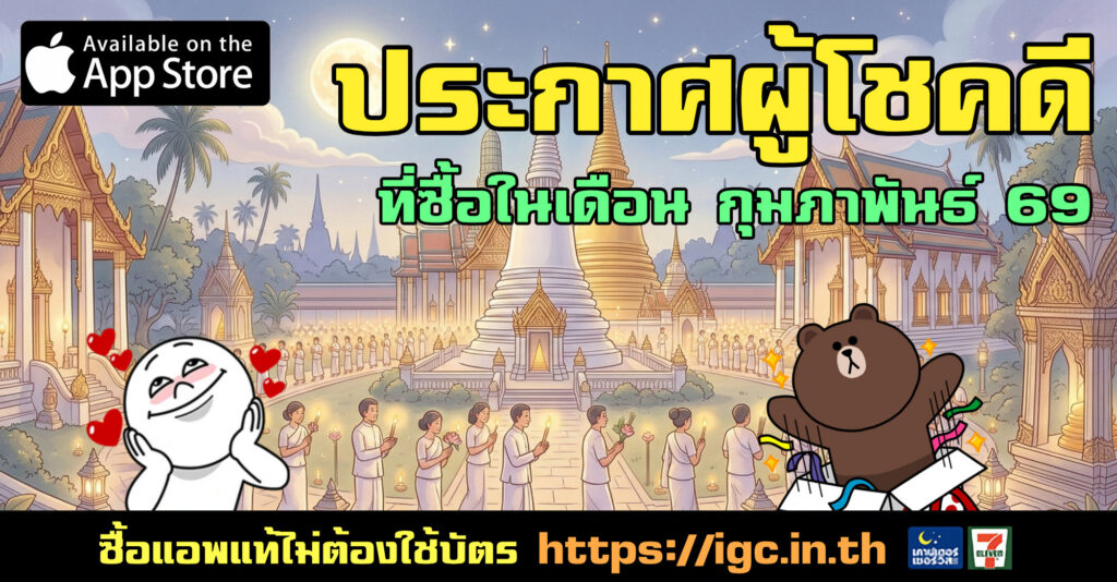 รายชื่อผู้โชคดีสำหรับท่านที่ซื้อ iTunes Gift Card กับทาง IGC.IN.TH ในช่วงเดือน มกราคม 2569 มาแล้วจ้า