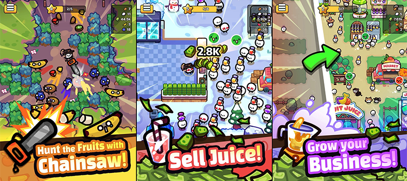 Chainsaw Juice King เกมสร้างธุรกิจร้านอาหาร ที่ครั้งนี้คุณต้องคว้าเลื่อยไฟฟ้าสุดน่ากลัว พุ่งเข้าสวนไปตัดผลไม้ แล้วนำมาปั่นบรรจุขวดขาย แล้วสร้างร้านให้ใหญ่โตที่สุดเท่าที่จะทำได้!