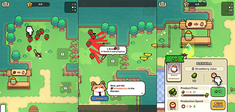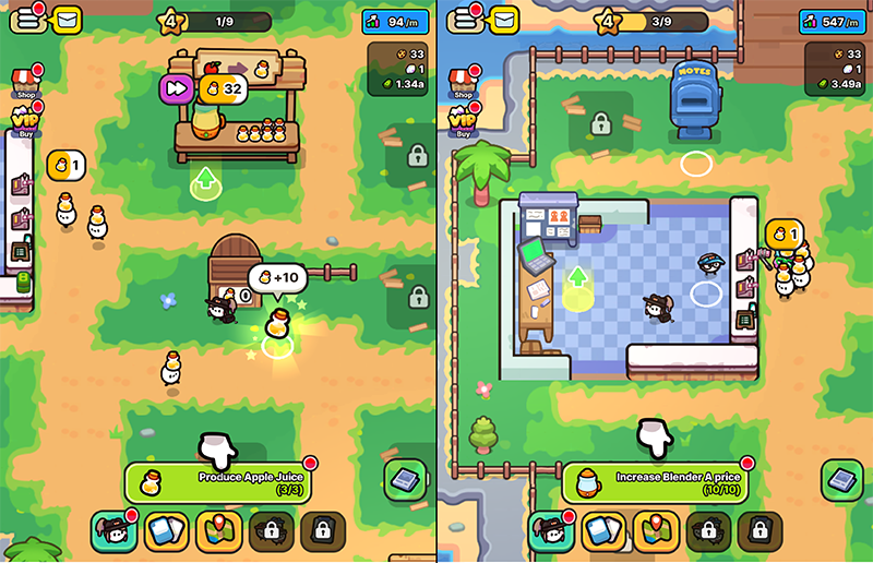 จากนั้นคุณก็ต้องเอาน้ำปั่นในขวดไปวางที่ชั้นวางสินค้ารอให้ลูกค้ามาเลือกซื้อ แล้วก็ต้องไปเป็นพนักงานแคชเชียร์ด้วยนะ แต่ไม่ต้องห่วง พออัปเลเวลแล้วคุณก็จะจ้างพนักงานเก็บเงินมาช่วยได้