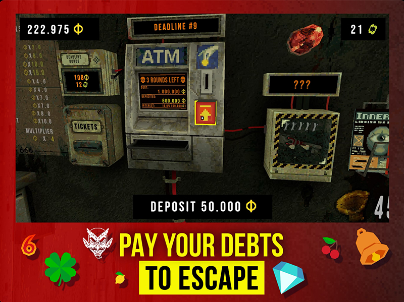 CloverPit จะขังคุณเอาไว้ในห้องอันคับแคบที่มีเพียงเครื่องสลอตและตู้เอทีเอ็ม หน้าที่ของคุณคือหาเงินใช้หนี้ก้อนโต บริหารโชคชะตาและไอเท็มพิเศษ วางแผนให้โยกเจอแจ็กพอร์ต หาเงินจากเครื่องนี้ให้ได้มากพอจนปลดแอกตัวเองออกไปได้ในที่สุด ฟังดูเหมือนต้องพึ่งพาโชคใช่มั้ย แต่ไม่เลย คุณเพียงต้องวางแผนกลยุธท์ให้ดี