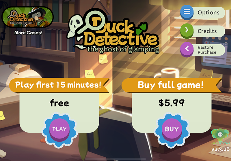 เกม Duck Detective: The Ghost of Glamping ให้คุณเล่นฟรีได้ในช่วง 15 นาทีแรกเพื่อดูว่าจะชอบหรือไม่ หากติดใจอยากเล่นต่อ สามารถซื้อได้ในราคาเพียง 5.99 USD หรือประมาณ 190 บาท