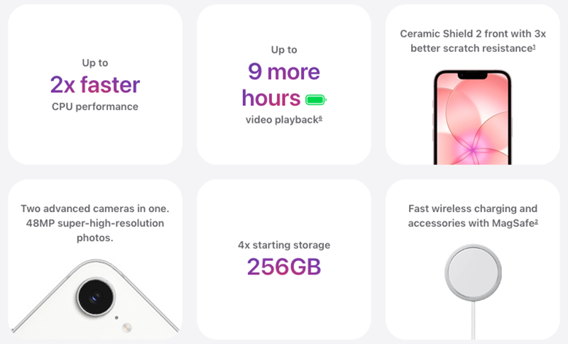 iPhone 17e มาพร้อมจอภาพ Super Retina XDR ขนาด 6.1 นิ้ว ให้รูปภาพคมชัดและสีสันสะดุดตา ข้อความคมชัดอ่านง่าย