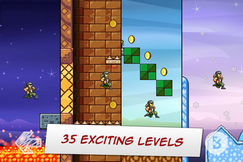 ประเดิมเกมแรก ก็พาย้อนยุคไปเล่นเกมสไตล์ 2 มิติ ที่เด็กรุ่นๆ นี้อาจจะไม่เคยได้เล่นมาก่อน ตัวละครจากเกมนี้ไม่แน่นอนใจว่าเอาแรงบันดาลใจมาจากเกม metal slug หรือเปล่า เพราะมันเหมือนกันอย่างกับแกะเลยทีเดียว ซึ่งแนวเกมๆนี้ก็จะเป็นเกม action ผจญภัย โดยมีด่านให้ได้เล่นถึง 35 ด่านด้วยกัน เอาเป็นว่าถ้าอยากรู้ว่าสนุกแค่ไหน ก็อย่าลืมโหลดไปลองเล่นกันนะ
