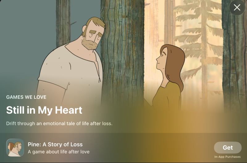 Pine: A Story of Loss เกมที่เล่นไปด้วยและได้อ่านนิทานที่ช่วยให้คุณได้เรียนรู้เรื่องความสูญเสียและเตรียมพร้อมให้คุณได้ก้าวเดินต่ไปง่ายขึ้นบนโลกใบนี้ ผ่านตัวละครสามีภรรยาคู่หน่ึงที่อยู่ในป่าอันสวยงาม