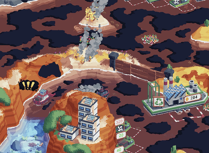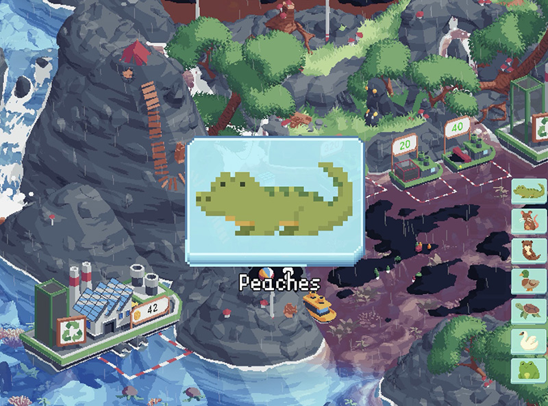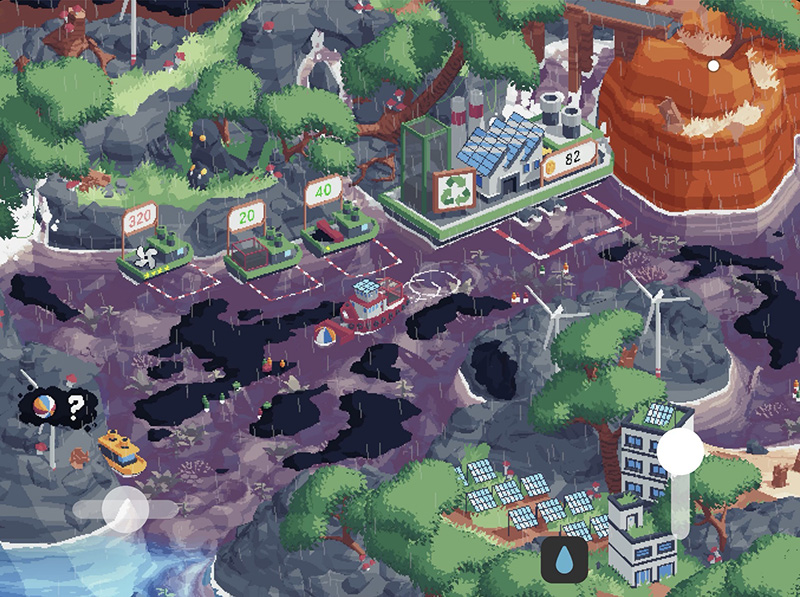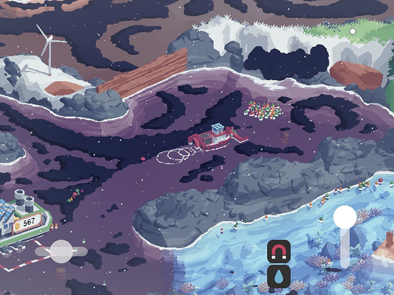 อีกสิ่งหนึ่งที่หลายคนพูดถึงเกม Spilled! ก็คือ ‘ภาพ’ ซึ่งให้ความรู้สึกอบอุ่นและสบายตา เป็นภาพสไตล์ Retro Pixel Art เน้นโทนสีที่ให้ความสดชื่นและผ่อนคลาย และการเปลี่ยนแปลงภาพต่าง ๆ เช่น เมื่อจัดการคราบน้ำมันและขยะ ก็ดูมีมิติมากเป็นพิเศษ