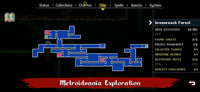 พอบอกว่าเป็นโลกเปิด แผนที่กว้าง ก็อาจจะกลัวหลงใช่มั้ย ไม่ต้องห่วง เพราะเกม Vohenn ได้สร้างระบบ Minimap หรือแผนที่ย่อ ช่วยให้ไม่หลงทางง่าย ๆ เป็นตัวช่วยหลักของเกมแนว Metroidvania ที่มักมีแผนที่ขนาดใหญ่และซับซ้อนมาก ถ้าไม่มี Minimap อาจจะหลงจนไม่อยากไหวจะเล่นต่อก็ได้นะ